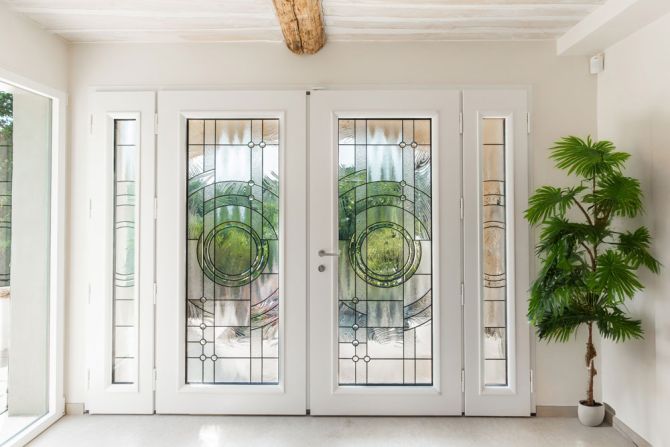 | Décor de base | Vitrail décoratif et petits bois noirs avec avec zones de transparences. |